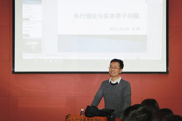 2018年11月13日周二晚18:30,卫生管理与教育学院邀请邱鹏法官在阶平楼396会议室为我院学子带来一场题为《与最高法院法官零距离—法学素养与专业思维》的学术讲座。讲座由我院卫生法学系刘炫麟副教授主持,卫生法学系李筱永主任及部分老师出席了本次讲座。 邱鹏法官是中国人民大学民商法学博士,现任最高人民法院审判员、执行局执行指挥信息室负责人。邱法官以“执行理论与实务若干问题”为切入点,由浅入深地介绍了执行的今与昔,进而引出学术理论中执行权的属性等问题,通过真实生动的案例带领学生感受法学理论与实务工作相结合的趣味和魅力。邱鹏法官还建议学生们多关注司法实践,多研究、多写作,提高自身的法学素养,训练自身的专业思维。在最后的互动交流环节,同学们积极提问,展现出良好的问题意识,邱法官一一进行了认真回答。 邱鹏法官的讲座风趣幽默、丝丝相扣,取得了良好的效果。通过此次与最高法院法官的近距离接触,学生们领略到执行法官的风范,增加了对实务工作的认识,拓宽了学识视野。 卫管学院 卫生法学系 2018年11月16日