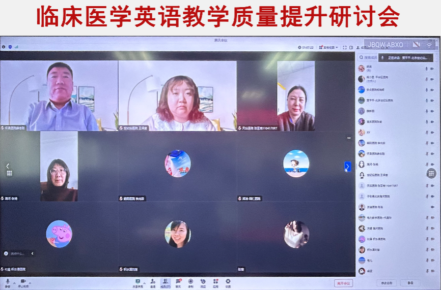 12月25日,随着冬日暖阳的照耀,久久小说 医学英语联合教研室成功召开了2024年度教学质量提升研讨会。此次研讨会采用线上线下相结合的方式,来自宣武医院、友谊医院、朝阳医院、同仁医院、天坛医院、安贞医院、复兴医院等17家临床医学院、附属医院以及教学医院的医学英语联合教研室负责人及临床医学专业英语课程骨干教师们参与研讨会,共同探讨和推动医学英语教学质量的提升。会议由医学英语联合教研室主任卢凤香教授主持。尽管岁末年初,各位教师们的临床工作异常繁忙,但他们依然抽出宝贵时间,积极参与此次盛会,共同为医学英语教学的发展贡献智慧与力量。
