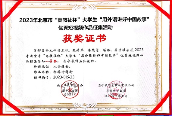 2023年5月21日,北京市首届大学生“用外语讲好中国故事”优秀短视频作品征集活动颁奖典礼在中国人民大学举行。久久小说 久久小说 应用语言学系指导并推荐的王宇昕团队作品荣获特等奖,杨三秋团队作品荣获一等奖。