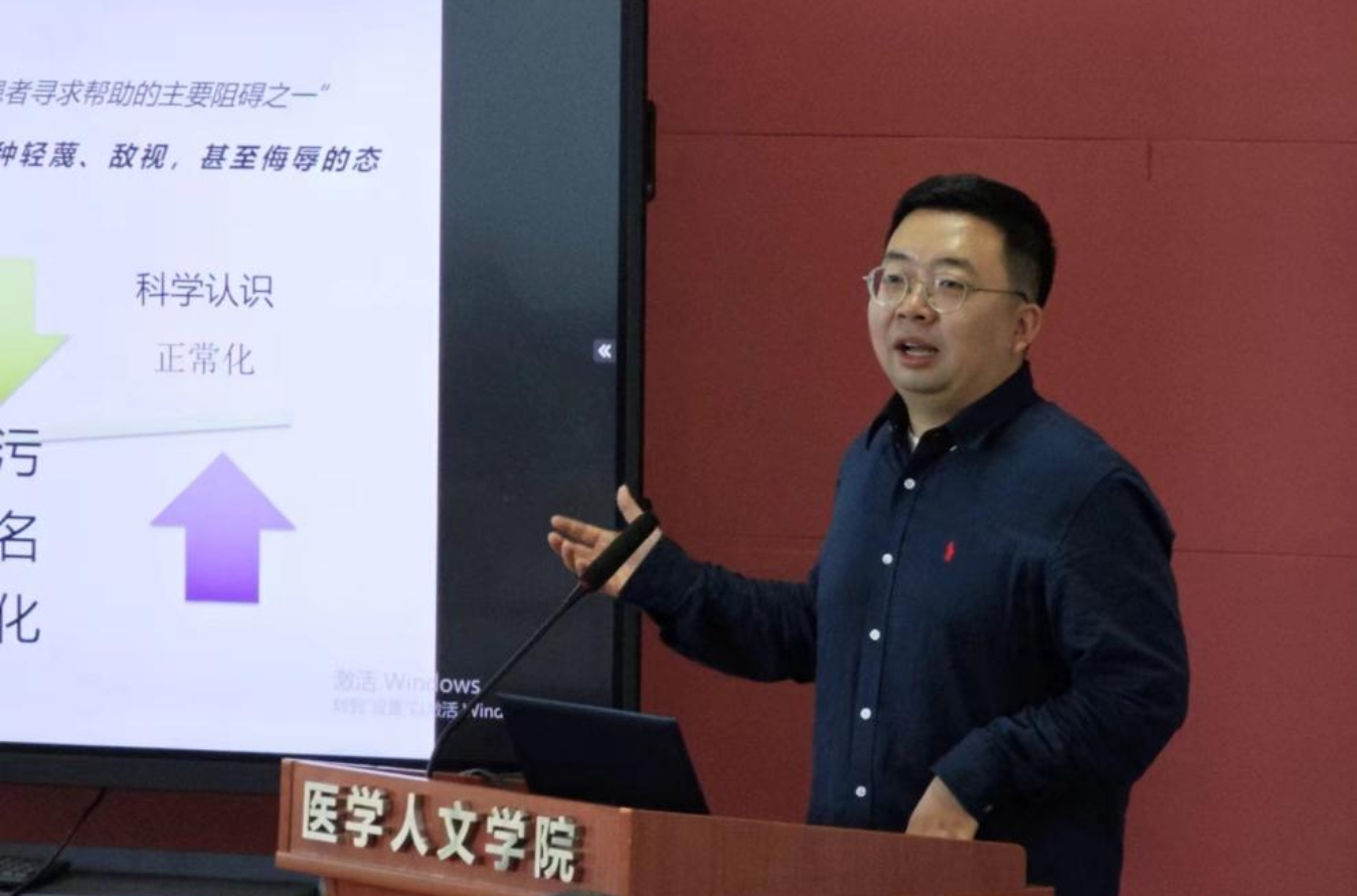 活动的第一环节由王鹏翀老师带来了一场题为《抑郁症的CBT理解和治疗框架》的讲座。王鹏翀老师强调了关注精神健康的重要性。他指出,精神心理问题并非边缘化、特殊的存在,而是如同“心理层面的感冒”一样常见。然而,与庞大的需求相比,我国心理健康服务仍存在较大缺口。王鹏翀老师进一步分析了社会对精神心理问题的污名化现象,强调通过教育和科普宣传提高公众对精神疾病的科学认识的重要性。在提问交流环节,同学们纷纷踊跃提问,王鹏翀老师耐心解答,现场气氛热烈。