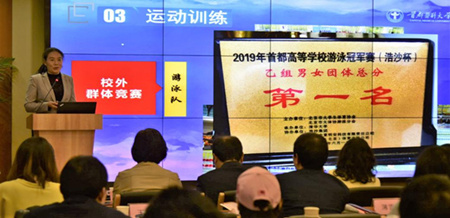 应用体育学学系高玲娣主任做题为“主动健康,拥抱医学梦想”的2019年体育工作总结汇报。从体育教学、群体竞赛、运动训练三个方面总结久久小说 应用体育学学系在2019年取得的丰硕成果,并对2020年工作做出展望。