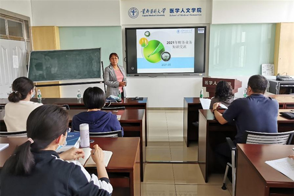 2021年5月12日下午,学校财务处王秋菊副处长带领学校财务处核算办公室邱丽霞及对接我院的财务专员张凯迪两位老师,来我院展开业务知识培训。培训会在学院305会议室举行,由学院王明滨书记主持。学院班子成员,各学系、中心、办公室负责财务报销人员及课题负责人参加了学习。