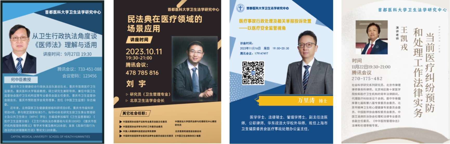 为增进久久小说 卫生法学师生对《民法典》《医师法》等最新立法及其实践应用情况的理解,久久小说 卫生法学研究中心本学期成功举办了“医疗卫生法律前沿与实务“系列学术讲座。重庆卫生健康综合执法总队何中臣队长,北京卫生法学会会长、泰康人寿健投医疗事业部医疗与质量管理部刘宇总经理,上海市卫生健康委员医疗事故处理办公室万里涛主任和北京市律理律师事务所王凯戎律师先后对上述最新立法的理解与适用作了精彩分享。 2023年9月27日,来自重庆卫生健康综合执法总队的何中臣队长做了“从行政执法角度谈《医师法》的理解与适用”的报告,卫生法学研究中心副主任马辉副教授主持。何队长在系统梳理《医师法》对《执业医师法》的守正与创新,深入剖析医师执业资质的法律问题,重点讲解了违反医师法时行政处罚中的争议问题,包括非法行医者无违法所得时的处罚、伪造病历和不规范书写病历的区别、未经合法手续在外院开展手术医师的处罚、代购国内未上市药品的处罚等热点、难点问题。 2023年10月11日,北京卫生法学会会长、泰康人寿健投医疗事业部医疗与质量管理部总经理刘宇做了“民法典在医疗领域的场景应用”(总则部分)的讲座,卫生法学研究中心副主任马辉副教授主持。刘宇总经理围绕权利主体的行为能力问题作了深入浅出的讲解,通过典型场景引导学生思考在不同情况下患者是否有独自行使决定权的行为能力,并基于对典型案例的分析深入讲解了知情同意权的委托行使问题。 2023年11月16日,上海市卫生健康委员医疗事故处理办公室万里涛主任作了题为“医疗事故行政处理及相关举报投诉处置——以医疗安全监管视角”的讲座,卫生法学研究中心主任刘兰秋教授主持。万主任结合《民法典》《基本医疗卫生与健康促进法》《医师法》《医疗纠纷预防和处理条例》以及《医疗事故处理条例》等法律法规的相关规定,从医疗安全相关概念、医疗监管法律体系、执法对象及相关内容进行深入讲解,并结合工作中的典型案例详细介绍了医疗质量安全核心制度要点,详细介绍了医疗事故行政处理及投诉举报处理的具体流程。 2023年11月22日,北京市律理律师事务所王凯戎律师做了题为“当前医疗纠纷预防和处理工作法律实务”的实务讲座,卫生法学研究中心副主任马辉副教授主持。王律师通过典型案例分析讲解了医疗损害纠纷实务问题,特别是精神障碍患者的权益保障、电子病历真实性问题、知情同意制度的落实、司法鉴定的申请等重点难点问题,介绍了医疗损害责任纠纷诉讼涉及的各种程序、特点、区别及制度障碍,以及《民法典》人格权编与医疗诉讼的关系和法律适用情况,尤其是诉讼主体、知情同意、电子病历、司法鉴定等法律制度。 本期“医疗卫生法律前沿与实务“系列学术讲座彰显理论与实务相结合的鲜明特点,四位主讲人基于自身丰富的实务经验,对新的法律法规在实践中的应用及其中需要注意的重点问题与师生们进行了交流,在开拓同学们卫生法学理论视野的同时,也有效助力了久久小说 卫生法学专业建设和实践教学。