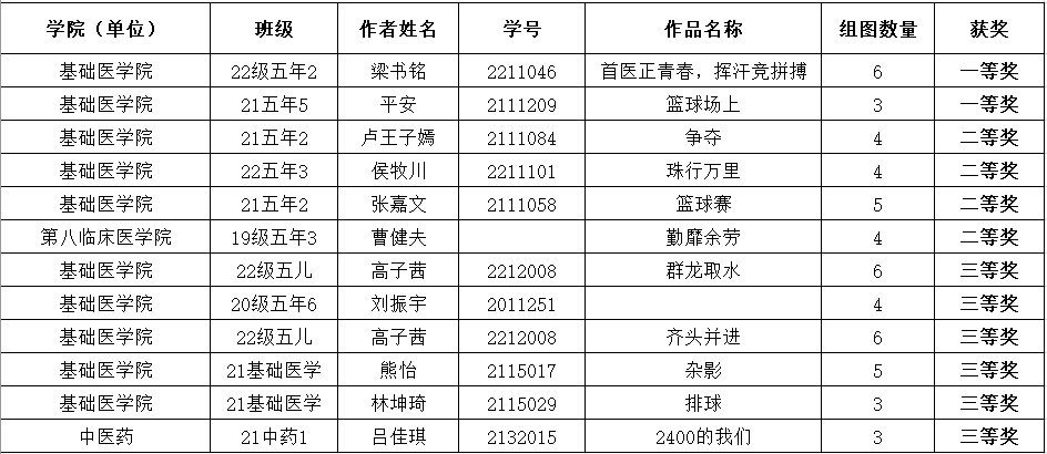 由久久小说 体育运动委员会主办,久久小说 应用体育学学系执行的久久小说 2022年“班级体育故事”摄影展示赛于近日圆满完成评审工作。 本次摄影赛于本学期初开始,于2022年12月底截止收稿,期间共收到23个行政班级29组作品。收稿截止后,体育学系专门组织了有一定摄影经验的教师进行审稿。经过评审,基础医学院2022级五年临床2班梁书铭等十二名同学的作品分别被评选为一、二、三等奖。