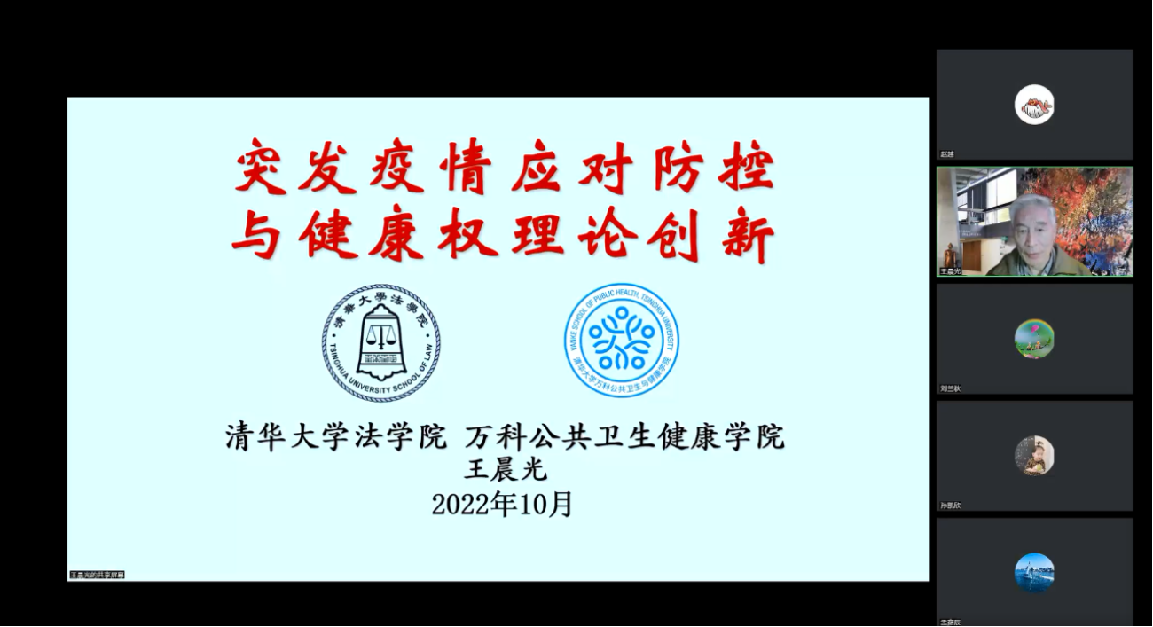 “卫生法学名家讲坛”第一讲主题是“疫情防控与人权理论创新”,由中国卫生法学会常务副会长、全国新冠肺炎疫情防控专家组法学专家、清华大学法学院王晨光教授主讲,卫生法学研究中心主任刘兰秋教授主持。王晨光教授以疫情防控对人权理论的挑战作为切入点,介绍了健康权和人权的历史发展,阐述了人权概念二元划分的局限性,并针对疫情防控中健康权的实践提出了人权理论的新思考,基于对美国政府在公共卫生领域的治安权等事例的分析,拓展了健康权理论的内涵,即应当将健康权和生命权置于人权体系的首位,讲座最后还提出了需要进一步深入研究的问题。王晨光教授的讲授高屋建瓴,深入浅出,深化了久久小说 师生对疫情防控和人权理论的认识。