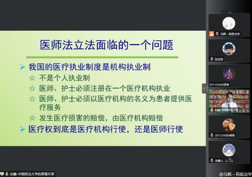 “卫生法学名家讲坛”第二讲由中国政法大学刘鑫教授主讲,题目是“医疗权的实践与监管”,卫生法学研究中心副主任马辉副教授主持。刘教授首先介绍《执业医师法》的修改背景,阐述了医疗权的理论意义,并系统地介绍了医疗权的定义、性质、内容等理论问题,并用生动的语言、鲜活的案例向听众介绍了医疗权的取得、行使、保障以及监管等具体制度。在介绍医疗权具体制度安排的同时,刘教授着重讲解了《医师法》较《执业医师法》的修订之处和医疗权实施的具体要求,涵盖了急救义务、告知说明义务、超说明书用药、报告制度等热点问题。最后,刘教授结合典型医师违法案例,介绍了违反《医师法》的行政责任,讲解了吊销医师执业证书的种种法定事由。通过学习,法学系师生对《医师法》的理论问题有了更深入的理解,医学生们提前接受了依法执业教育。