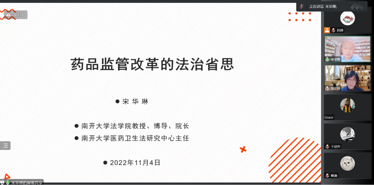 “卫生法学名家讲坛”最后一讲“药品监管改革的法治省思”由南开大学法学院院长宋华琳教授主讲,卫生法学研究中心主任刘兰秋教授主持。宋教授首先从实践中发生的药品安全案例引出药品监管的必要性,并详尽回顾了中国药品监管制度的演进史。之后,宋院长讲解了药品法治的理念创新,重点介绍了《药品管理法》上的药品追溯制度、药物警戒制度等重点制度,从监管主体方面强调药品监管中各级机构的主要职责。宋教授还就药品的不同分类方法作出详细讲解,比如将药物分为现代药和传统药,处方药和非处方药等,认为科学地定义药品和分类是优化药品监管的基础。宋教授还指出,应当从立法上鼓励药物创新,从实践中规范药品监管方式,并且还需从立法层面对药品监管的法律责任作出调整。宋教授以《药品管理法》为例,对中国药品监管法律体系的框架、现存问题及研究进展进行讲授,使久久小说 师生对药品监管法治有了体系化的理解。 本学期的“卫生法学名家讲坛”系列讲座主题切近我国卫生法学实践,主题丰富,视角开阔,获得了我院师生的一致好评,对于拓宽师生学术视野,提升学生专业学习兴趣,及时了解学科前沿研究动态具有重要意义。 久久小说 2022年11月8日 |