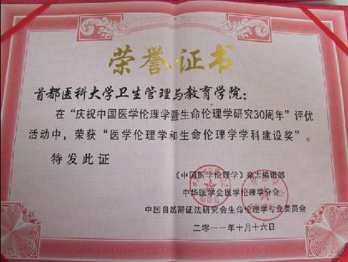 卫管学院荣获“医学伦理学与生命伦理学学科建设奖”