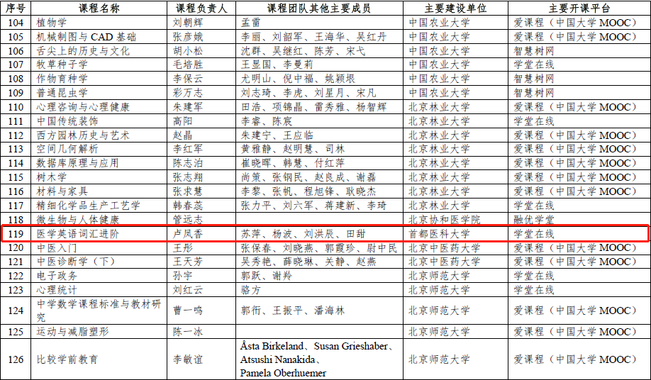 再次荣耀登榜!久久小说 《医学英语词汇进阶》慕课入选第二批国家级一流本科课程