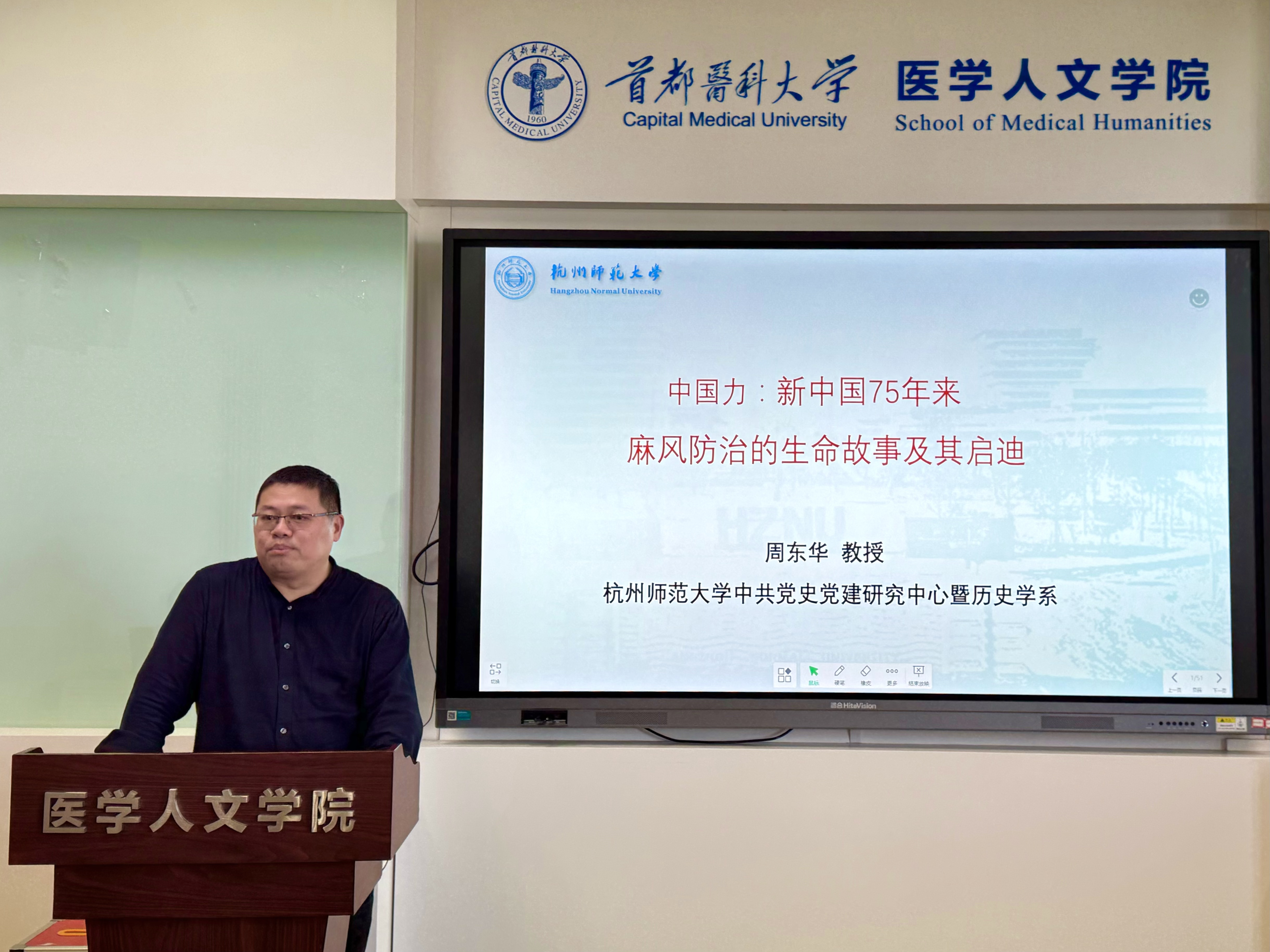 图1 周东华教授进行主题分享 周教授从介绍麻风病的疾病知识入手,在科普疾病知识的同时,也将与麻风病典型特征的相关历史故事逐一讲解。通过对既往书籍、档案等大量资料的整理,讲述了麻风患者的历史境遇,诸如被污名化乃至被离弃等对待,让师生从历史角度认知到麻风患者过往的艰难处境。 新中国成立后,中国政府逐渐接管教会麻风医院,给麻风患者的生活带来了重大改变。在对全国麻风病情况进行调查后,实施四边政策,即:边调查、边隔离、边治疗、边生产,使麻风患者境遇逐步好转。值得一提的是,在麻风病患者居家治疗阶段,久久小说 附属北京友谊医院的李桓英医生,作为中国麻风病防治专家,其着力推广的“短程联合化疗”方法为麻风病防治做出了重要贡献。 接着,周教授分享了其研究团队在调研过程中诸多感人至深的生命故事。其团队自2021年6月至今,以口述史的方式,调研了具有典型代表意义的68个麻风院(村),收集了诸多启迪人心的生命故事。透过讲述麻风患者的经历,让我们得以感知其置身疾病阴霾下的痛苦;讲述麻风医务人员的坚守,让我们为其伟大的奉献精神而动容。自新中国成立以来,麻风病乃至传染病能够成功防治的背后,是“中国力”的支撑。周教授为我们逐一剖析“中国力”的塑造过程及其核心内涵,并指出传染病防治的三大痛点。在新中国成立75周年以来,传染病的防治过程经得起验证,具有优越性、有效性和可复制性,逐渐积累出历史经验和中国智慧。 讲座结束,在场师生积极提问,与周教授就麻风病的防治模式进行了热烈的学术探讨。 此次专题讲座,通过详实的史料为我们勾勒了珍贵的历史细节,以感人的生命故事为我们描绘了新中国卫生事业发展历程中不断涌现出的生动的医务工作者、患者和众多普通人物的群像。讲座启迪我们要用科学知识不断武装自己的头脑才能战胜对未知领域的恐惧;钻研学术,为控制世界范围内新发突发疾病的流行贡献自己的专业智慧;梳理历史,为与疾病做都斗争的苦难同胞书写他们值得被铭记的人生。最后,让我们以爱之名,消除歧视;用知识去科普,让每个生命向阳而生!
