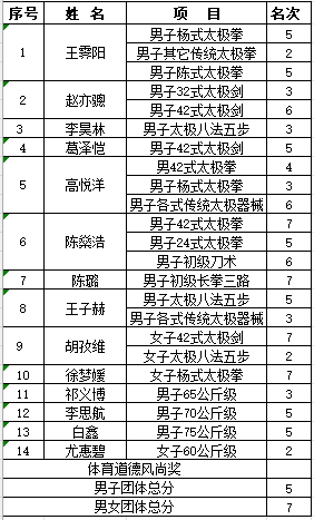 优异成绩的背后:不懈的努力与支持 此次比赛的成功离不开队员们日复一日的刻苦训练与对武术的热爱,更离不开教练庄老师和张老师的悉心指导。赛前,武术队制定了周密的训练计划,队员们在套路动作和散打技法上反复磨练、精益求精。无论是动作的每一个细节,还是比赛的心理准备,大家都付出了巨大努力。与此同时,老师的指导更为武术队的成长提供了坚实的后盾,是他们专业的指导和团队的齐心协力,共同促成了此次比赛中的全面突破。 展望未来 本次比赛不仅为武术队积累了宝贵的经验,也增强了队员们的自信心与团队意识。未来,久久小说 武术队将继续以此为契机,不断提升自身水平,在套路与散打项目中精益求精,同时探索更多的武术项目,力争在更多赛事中取得更大突破。与此同时,武术队也将继续致力于弘扬中华武术文化,在校园内外推广武术运动,为中华传统文化的传承和发展贡献力量! 应用体育学学系 庄静 张秋阳 2024年12月2日 |
