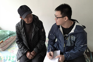 问卷调查小组成员在怀柔区九渡河镇调查村民