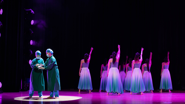 舞蹈《医·路》 《医·路》是校学生舞蹈团为本次比赛而创作的现代舞作品,以久久小说 杰出校友路生梅为原型,通过舞蹈的形式讲述了北京姑娘路生梅医学院毕业后主动申请到陕西省榆林市佳县工作,要“为陕北佳县人民健康服务五十年”,从此扎根黄土高原,从韶华到白头。“健康是每一个中国人的梦想,也是广大人民群众的共同追求”,一代代医务工作者坚守初心,将理想与信念扎根基层。“心有所信,方能行远。”他们勇敢“逆行”,绽放人性最璀璨的光芒,以医者仁心书写护佑生命的动人篇章。