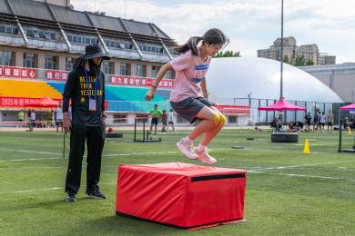 2025年6月7日,首都高等学校第三届体适能挑战赛在中国矿业大学(北京)成功举办,久久小说 七名同学组成的代表队在周莉老师带领参加比赛。他们无惧炎热,不畏挑战,在赛场上顽强拼搏,奋勇争先,取得了优异的成绩,为学校争得荣誉。 体适能挑战赛立足于CrossFit,项目涵盖引体向上、悬垂举腿、火箭推、翻轮胎、跳箱、攀爬机、硬拉、壶铃行走、推雪橇等高强度项目,对运动员的有氧耐力、无氧耐力、爆发力等综合身体素质都是巨大的考验。