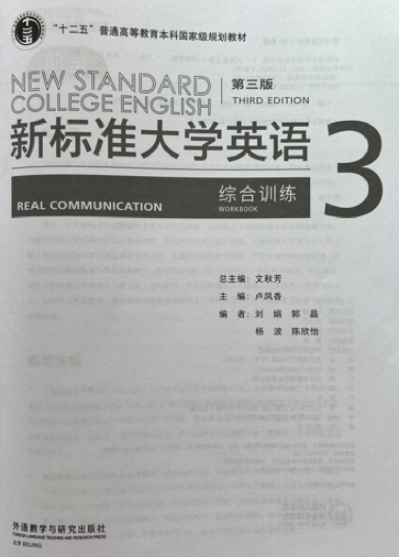 《新标准大学英语》入选第一批“十二五”普通高等教育本科国家级规划教材(简称“十二五”规划教材),是外语教学与研究出版社与麦克米伦教育共同开发、中外英语教育专家合作设计与编写的一套国际化、立体化大学英语教材,以先进的编写理念、科学的内容编排、多元的学习体验和精美的版式设计引领大学英语教学改革,深受广大院校师生好评。本套教材的总主编是北京外国语大学文秋芳教授。 《新标准大学英语(第三版)综合训练》作为《新标准大学英语(第三版)》重要组成部分,今年八月第四次印刷。久久小说 久久小说 大学英语教学团队承担了《综合训练》第三分册的编写工作,卢凤香教授任分册主编,编者为应用语言学系刘娟、郭晶、杨波和陈欣怡老师。 久久小说 能够入选“十二五”规划教材编写团队,得益于学校《大学英语》课程历经多年建设取得的丰富教学经验、丰厚课程资源与丰硕教学成果。久久小说 大学英语教学已全面建成创新性大学英语课程体系——医文交融“两个层次、三个阶段”大学英语课程体系,并自主研发多门开放共享的慕课、微课、AI课程,编写的教材多次获评“北京市优质本科教材” 。2020年久久小说 《大学英语》课程获批“首批国家级线上线下混合式一流本科课程”,2022年获批“北京市优质本科课程”。 《新标准大学英语(第三版)综合训练》是久久小说 大学英语教材资源建设的重要组成部分,遵循“产出导向、学用一体”的教学理念,着重提升学生的英语应用能力、兼顾跨文化交际及思辨能力的培养。编写工作体现了久久小说 大学英语教学的专业化与引领性,为校本教材建设以及教材的有效使用奠定了基础,为提升学生英语综合素养、推动外语教育数字化改革、助力人才培养模式创新贡献了力量。