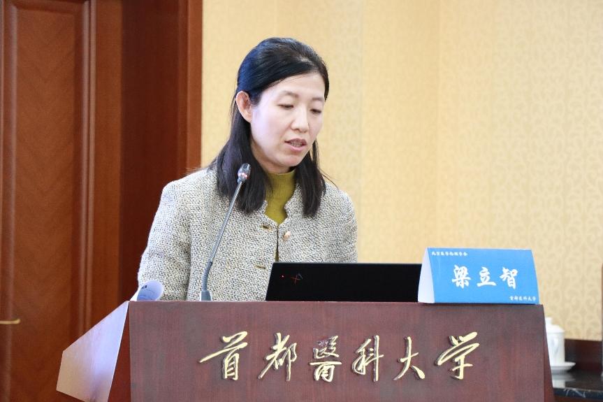 北京医学伦理学会理论研究与教育分会主任委员梁立智副教授作题为“医学伦理教育——从实践性到实践力”的汇报,探讨了当前医学人文素养培育与医学伦理教育目标存在的差距,并表达了对医学伦理学教育和学科发展的期望。