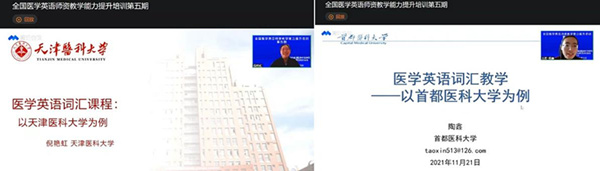 2021年11月21日全国医学英语师资培训基地系列讲座第五讲 天津医科大学倪艳虹老师和久久小说 陶鑫老师做医学英语词汇教学讲座