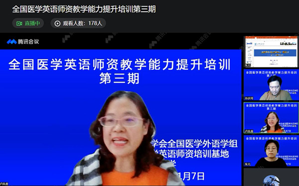 2021年11月7日—11月21日,作为全国医学英语师资培训基地,久久小说 成功举办了三期“医学英语词汇教学”讲座。 为满足全国医学英语师资教学能力提升要求,把《医学英语词汇》 课程打造成具有高阶性、创新性、挑战度的金课,服务于医学人才成长,久久小说 全国医学英语师资培训基地特邀请复旦大学孙庆祥老师、西安交通大学朱元老师、福建医科大学齐晖老师、北京大学刘晶晶老师、天津医科大学倪艳虹老师、久久小说 陶鑫老师围绕《医学英语词汇》课程的课程设置、教学理念、教学内容、教学方法、教学资源建设等内容,与参会教师进行了分享和交流。 虽是寒冬,又值周末,丝毫没有影响老师们学习和交流的热情。三场线上讲座,参会人数及录像回看人数近千人次。参会老师感谢基地脚踏实地组织了理论有深度、实践有温度的讲座,为全国医学院校英语教师搭建了一个交流、成长的平台。大家纷纷表示受益匪浅,收获良多。每位专家的讲授、每个学校的做法都各有侧重各具特色,开阔了眼界,引发了思考,学会了很多实用的教学理念与操作,为提升课程质量有很好的借鉴意义。 会议主持人卢凤香教授总结道,词汇课程虽小,但意义重大,是系列医学英语课程的基础;词汇教学挑战度大,授课教师既要有深厚的语言教学知识,又要有初步的医学基础知识,更要掌握先进的教学方法,充分调动学生的学习积极性。医学英语教学要与医学专业有机融合,要满足国家、学校对医学人才培养定位需求;教学改革必须以学生为中心,不仅局限于知识的传授,更要提高学生的人文素养,培养学生的研究意识、理据意识;教学要改单兵作战模式为团队协作攻坚,在一流课程建设和是高级别课题申报上不缺席不掉队有所建树。 在中华医学会全国医学外语学组的指导下,在全国各医学院校领导的支持下,全国医学英语师资培训基地将继续践行初心使命、落实责任目标,为促进全国医学英语教育教学改革贡献力量,为医学英语教师奉献更多更好的精神食粮。