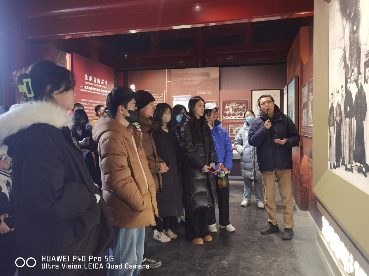 学生们通过卫生法宣传卡片向游人宣讲 普法宣传进社区,雷锋精神暖人心 2022级和2023级法学(卫生法学方向)班的师生们在陶然亭公园南门,开展普法宣传活动。他们将精心制作的文明行为法律指引便携卡片发放给过往群众,卡片内容涵盖《北京市文明行为促进条例》等法律法规,用通俗易懂的语言向市民普及法律知识,传播文明理念,将雷锋精神融入日常生活,用实际行动践行志愿服务精神。 红色基因永传承,革命精神励青春 在北京市爱国主义教育基地——慈悲庵,师生们怀着崇敬的心情,跟随讲解员的脚步,参观了“五四运动与马克思主义传播”主题展和“北京共产党早期组织”历史陈列。一幅幅珍贵的历史照片,一件件真实的文物史料,一幕幕生动的场景复原,将大家带回到那个风雨如磐的年代,深刻感受革命先驱为民族独立和人民解放抛头颅、洒热血的伟大精神,进一步坚定了热爱党、热爱祖国、热爱社会主义的理想信念。