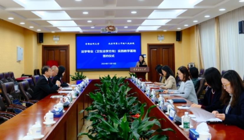 为进一步增强久久小说 法学(卫生法学方向)专业人才培养的卓越性,促进久久小说 法学专业一流本科专业建设,充分发挥校院、校检协同联动育人的独特优势,实现法学研究与司法实践之间的良性互动与互促共赢,2024年11月19日,久久小说 分别与北京市第三中级人民法院、北京市丰台区人民检察院举行了实践教学基地签约授牌仪式。校党委副书记张莉鑫、久久小说 党总支书记王君、院长卢凤香、副院长张清华、卫生法学学系系主任李筱永,北京市第三中级人民法院党组成员、副院长薛强、民一庭庭长陈晓东、民一庭副庭长林存义,北京市丰台区人民检察院党组书记、代检察长刘泽锋、党组成员、政治部主任马睿、第一检查部副主任郭譞等相关领导出席相关仪式。大会由久久小说 副院长张清华主持。